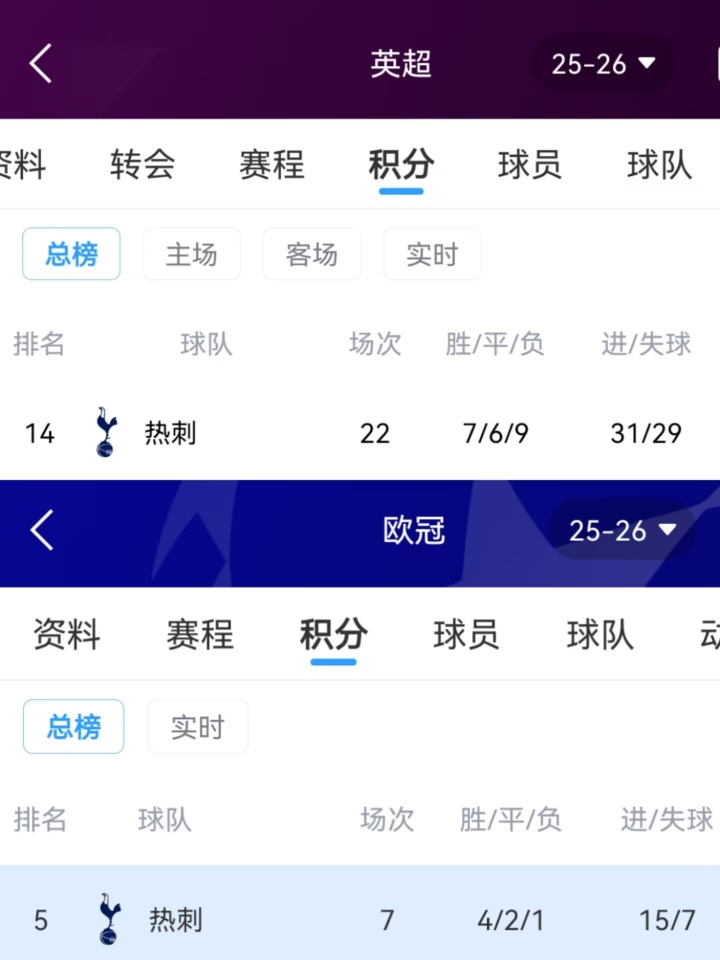 但本赛季热刺在联赛却表现不佳,近期他们已经在联赛遭遇4轮不胜和2连败,英超积分榜上只排名第14。